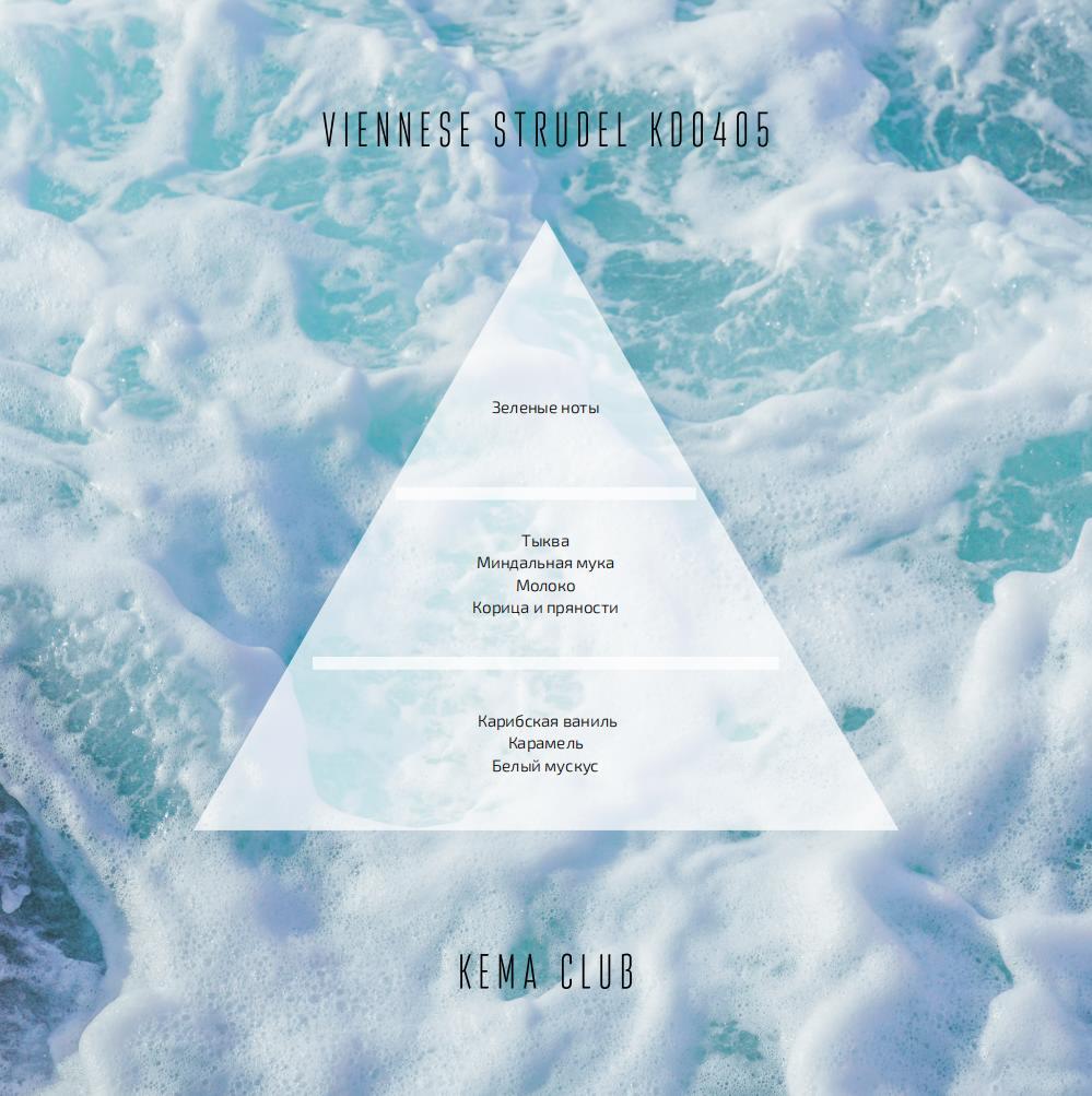 Основные аккорды этой отдушки — это сладкий и фруктовый аромат венского штруделя, с нотами корицы и ванили. Этот аромат напоминает теплый и уютный осенний день, когда за окном листопад, а в комнате запах свежеиспеченного штруделя.